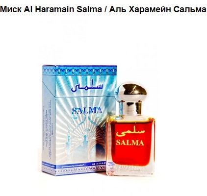 Al Haramain Salma -- шлейфовые духи, очень стойкие, они раскрывается постепенно, обнаруживая свои новые оттенки в зависимости от времени их использования, типа кожи и даже эмоционального настроения человека.